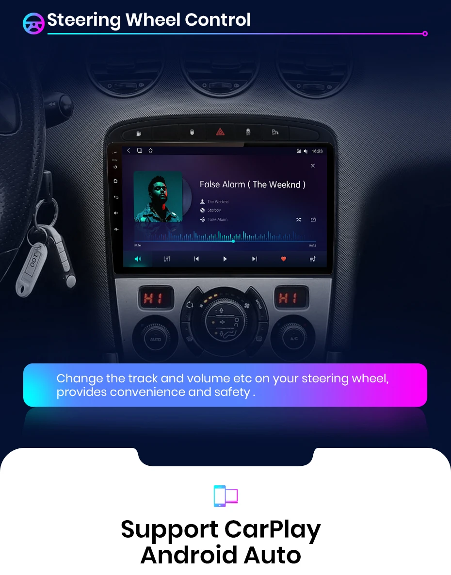 Bulit in CarPlay4G+64G supports, easy to handle iPhone while driving