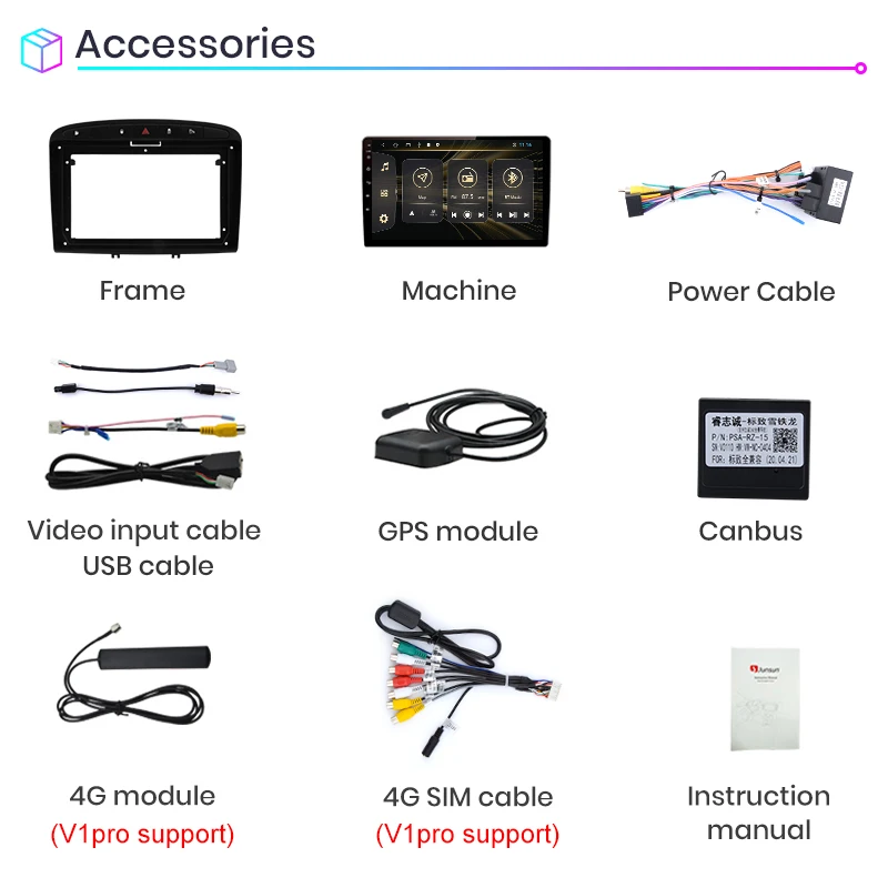 1. Штифт-штифт: Кабель питания Junsun radio' является штифтом для штифта, прост в установке;2. Встроенный Carplay/ Android Auto: Поддержка версии V1Pro, просто используйте кабель телефона, подключите его, стабильный и простой в использовании; (V1 поддерживает только Android Auto, но нужно покупать; V1C не поддерживает)3. Поддержка подголовника: только поддержка версии Junsun V1;