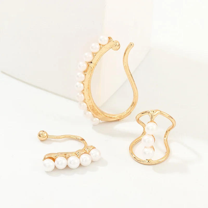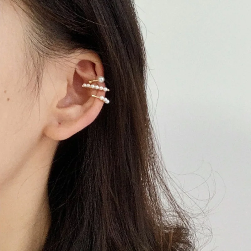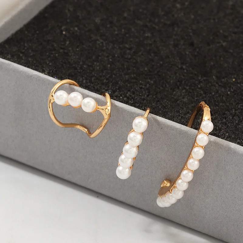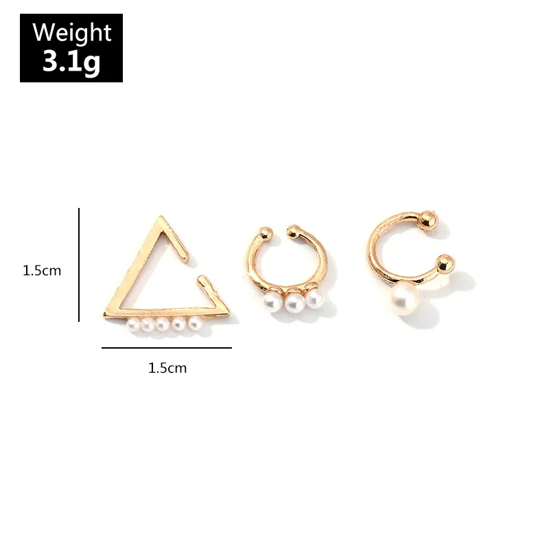 Boho 3 шт.компл., панк, имитация жемчуга, клипсы с кристаллами для женщин, богемные, серебряные, цветные, манжеты для ушей, геометрические серьги, ювелирные изделия