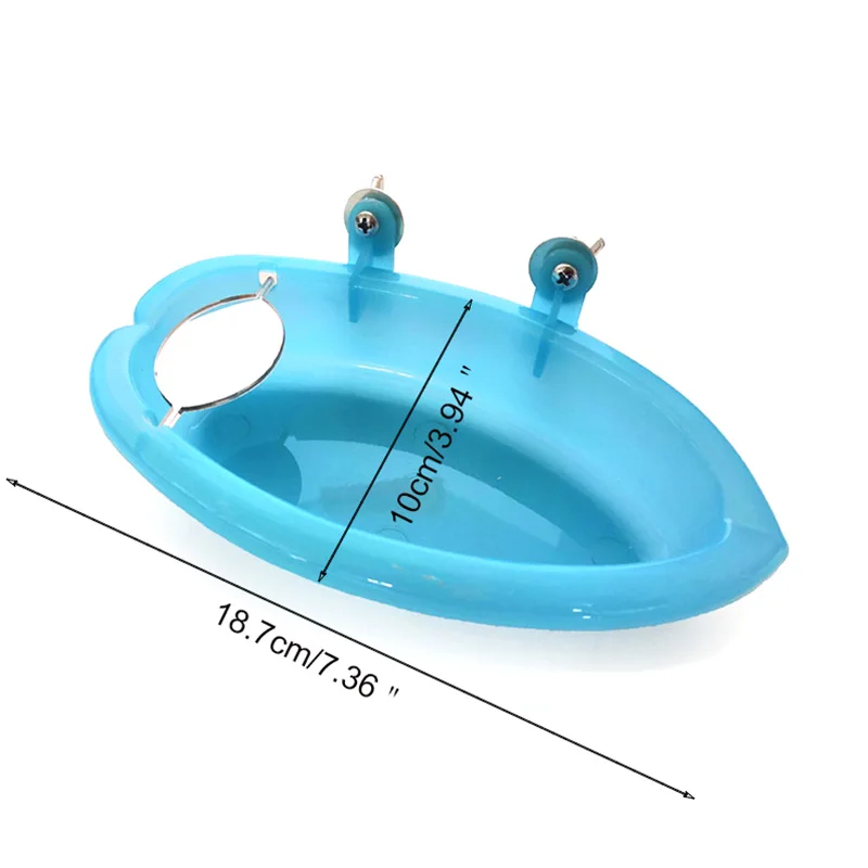 Материал: пластикЦвет: синий, фиолетовыйТип аксессуаров для птиц: ванны для птицРазмеры: Синий: 18,7*10*3,5 см; Синий овальный, сиреневого цвета овальной формы: 13*8,5*8 см; Голубое нижнее зеркало: 14,5*8,2*4,5 смПосылка включает в себя: 1 × ванна для птицы