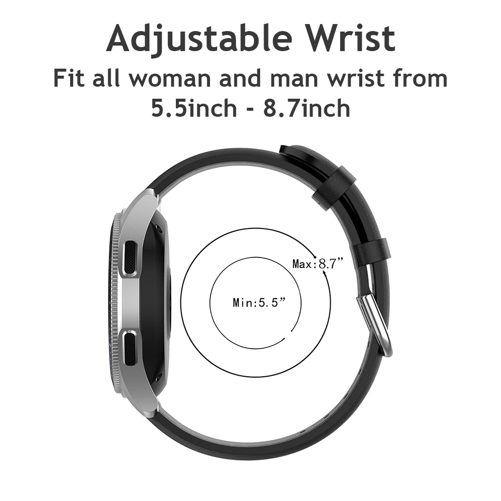1. Супер мягкая, водонепроницаемая и прочная натуральная коровья кожа 2. Совместимость со всеми часами шириной 20 мм и 22 мм 3. Легко установить и заменить ремни в считанные секунды, без каких-либо инструментов