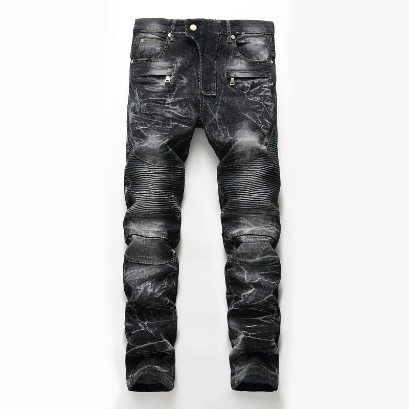 Джинсы мужские байкерские, моющиеся, со складками, с несколькими ка...