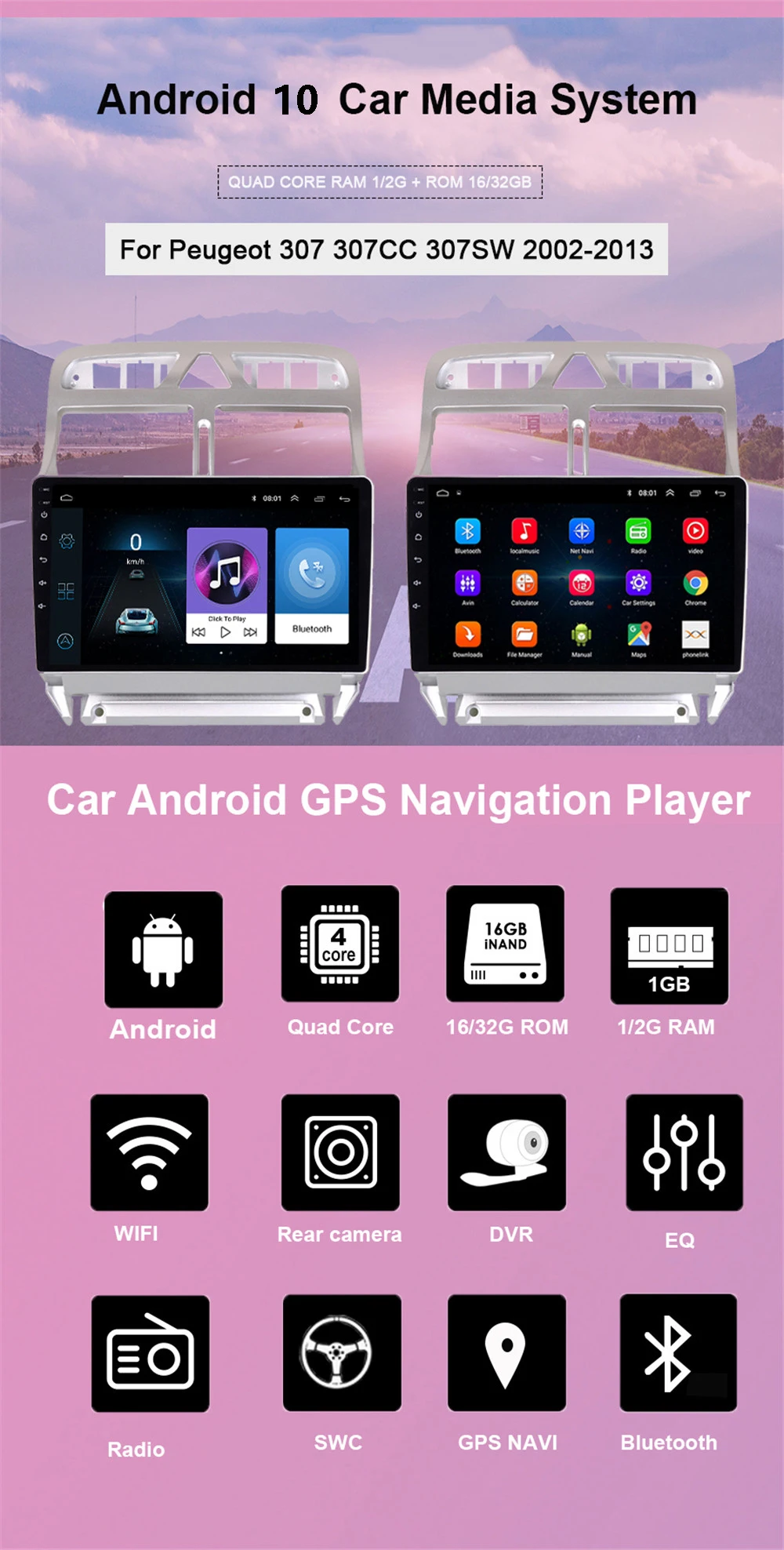Автомобильный мультимедийный DVD-плеер 2din Android 10 для Peugeot 307 307CC 307SW 2002-2013 9 дюймов Автомобильный радиоприемник GPS-навигация WiFi Bluetooth Play