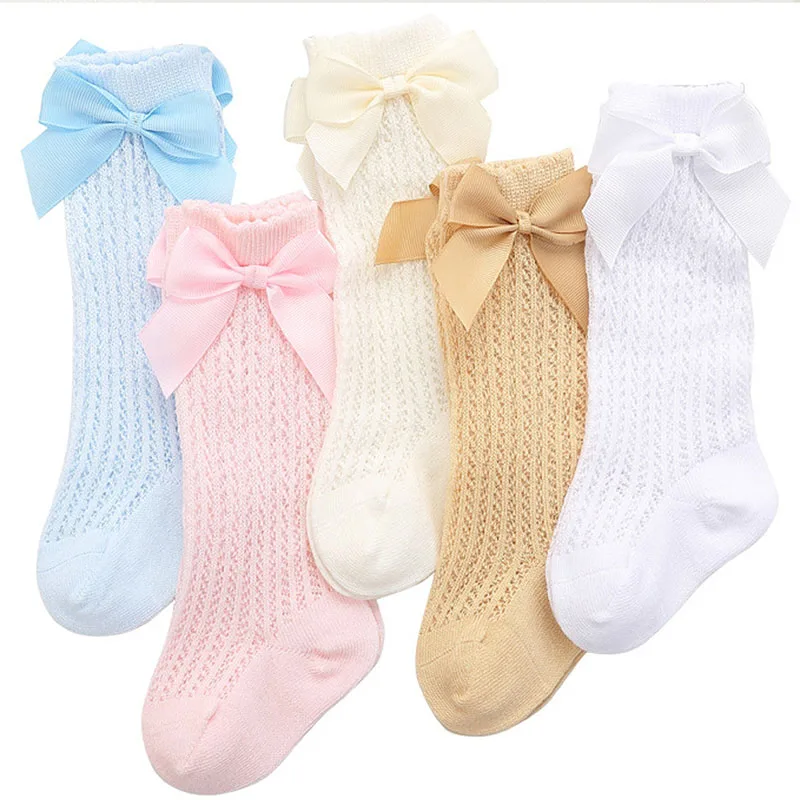 Симпатичные трико для маленьких девочек, хлопковые дышащие сетчатые колготки до колена с бантом для новорожденных, весна-лето
