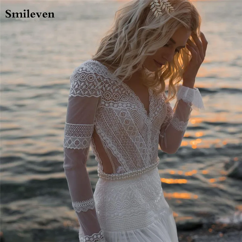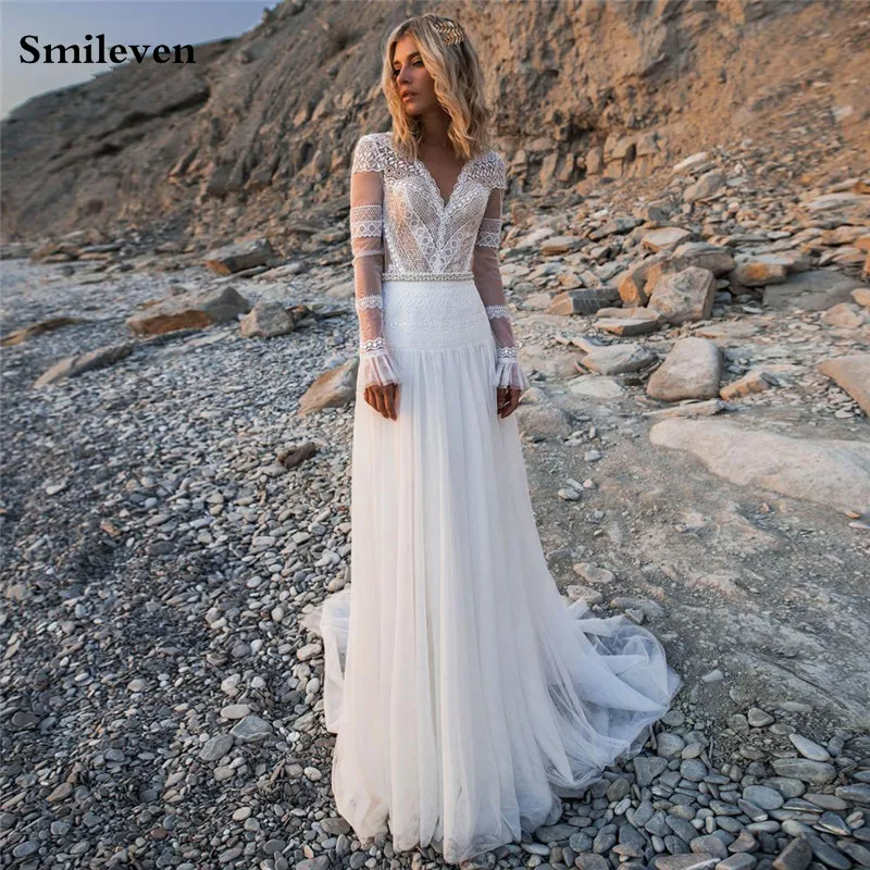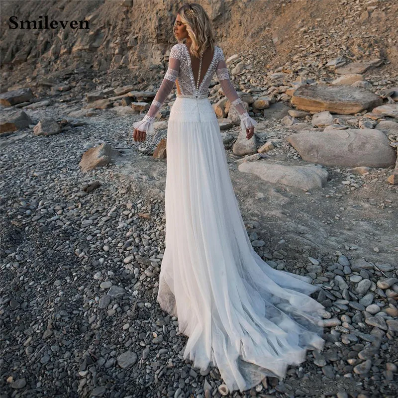 Женское кружевное платье Smileven, длинное свадебное платье из фатина с V-образным вырезом и аппликацией, 2020