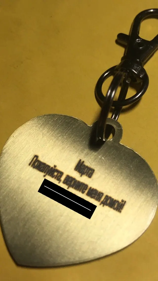 Такой уже заказывали - и потеряли( Заказала повторно, потому что понравился, но в это раз одену только на колечко потолще, без карабина. Телефоны выгравированы чётко, не затрутся , кличку я не пишу на адресниках.