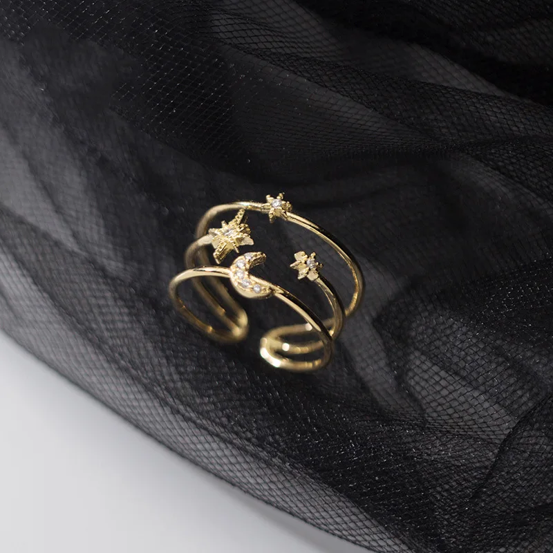 Трехслойное кольцо MloveAcc со звездами и луной, циркониевое блестя...