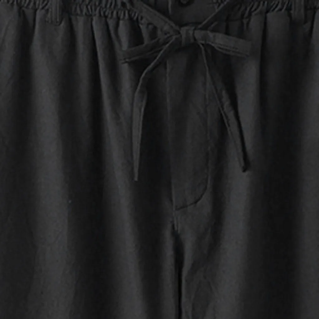 Мужские повседневные льняные дышащие свободные длинные брюки, однотонные прямые брюки