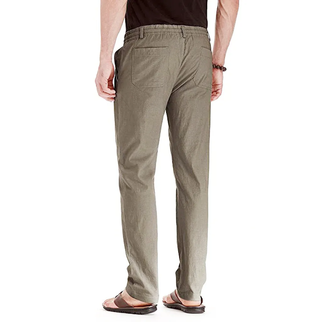 Мужские брюки, повседневные, из льна, дышащие, свободные, спортивные, длинные, однотонные, прямые