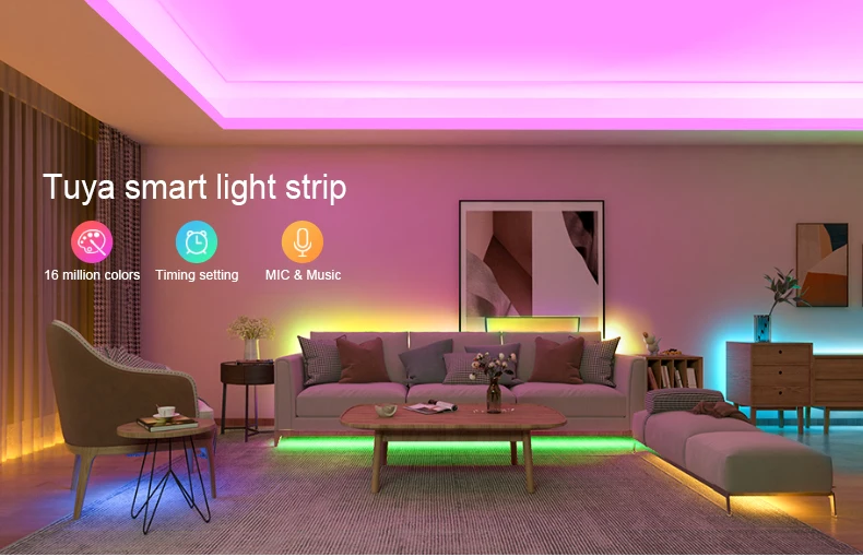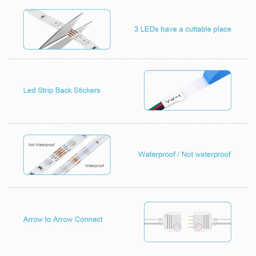 Светодиодная лента Tuya Smart Life, 12 В, 123451015 м, RGB, Wi-Fi, голосовое управление, тыловая подсветка, работа с Alexa EchoGoogle Home