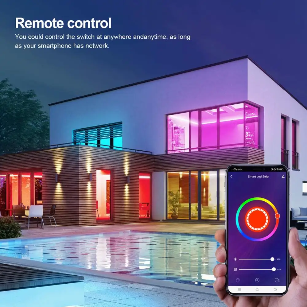 【Пульт дистанционного управления 】 даже если вы не дома, вы можете управлять умной светодиодной лентой вкл/выкл с помощью телефона через приложение Tuya или smart Life. Легко установить расписание для вашей умной светодиодной ленты. Подгоняйте свой домашний светильник, например, устанавливайте светильник s, чтобы включаться в сумерках или выключаться на рассвете. Вы можете создать группу для всех ваших умных светодиодных лент и управлять ими с помощью только одной команды. Работает с 2,4 ГГц сети Wi-Fi.