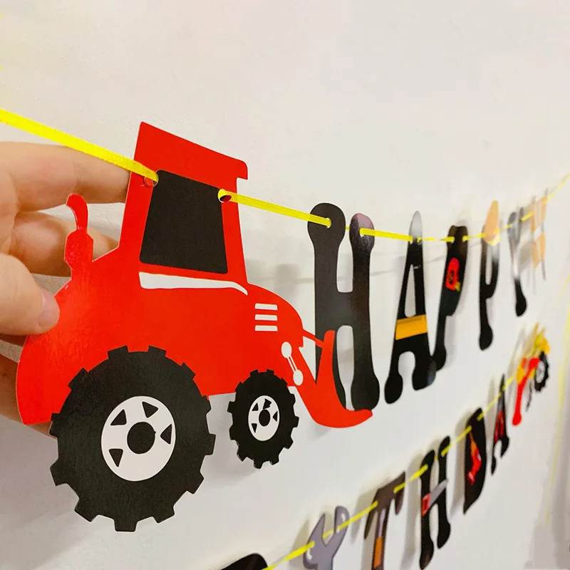 Строительство с днем рождения гирлянда экскаватор транспортного средства баннеры детский день рождения, день рождение мальчика вечерние Декор-баннер поставки