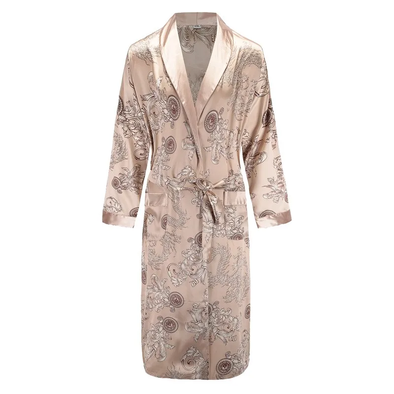 Халат Мужской Атласный, с длинными рукавами и принтом дракона