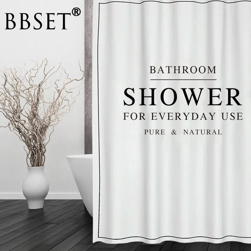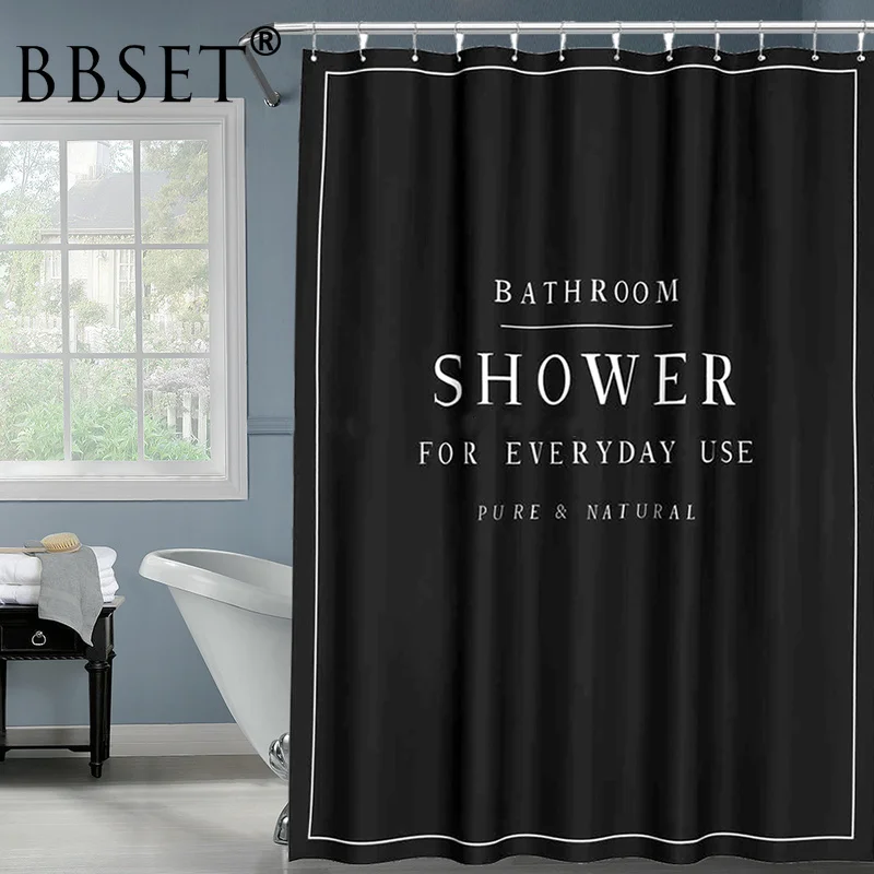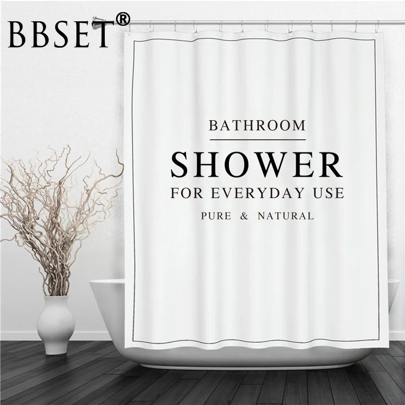 Занавеска для душа, черно-белая, с буквенным узором, водонепроницаемая, разных размеров, из полиэстера