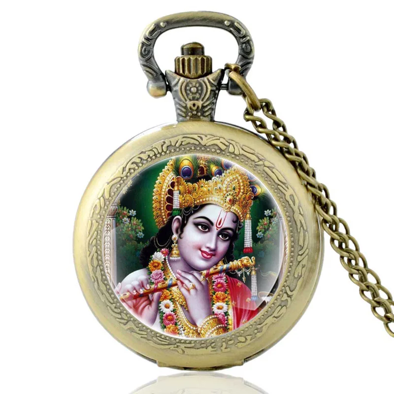 Новое поступление Hinduism Krishna винтажные кварцевые карманные часы для мужчин и женщин стеклянная купольная Классическая Подвеска на ожерелье часы подарки