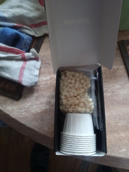 Воск пришёл за три недели в Германию. Использовать очень просто: разогреть несколько шариков в микроволновке в течение минуты. Потом на палочку и в нос, прижать, подержать пару минут и резко дёрнуть вниз. Кстати, совсем небольно.