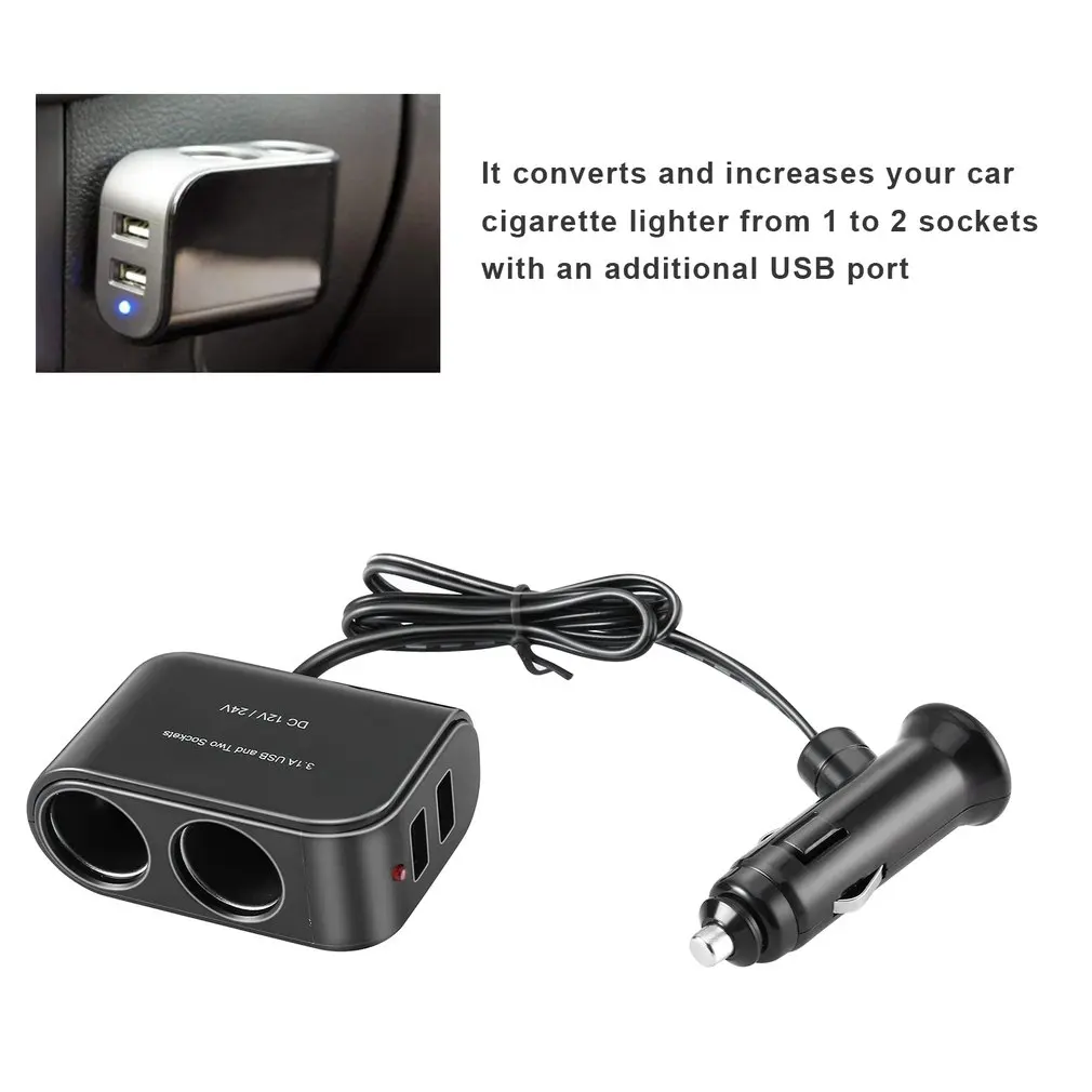 Он преобразует и увеличивает ваш автомобильный прикуриватель с 1 на 2 гнезда с дополнительным USB-портом.