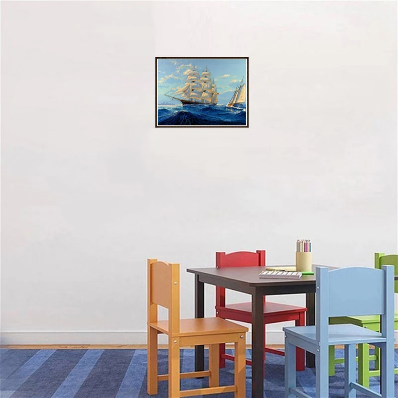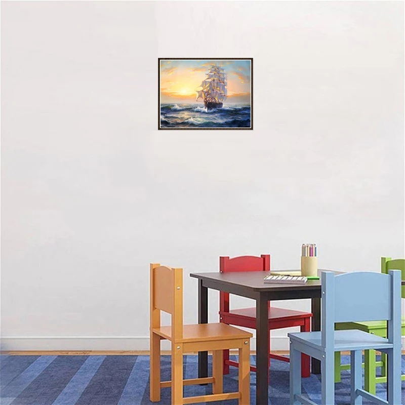 Алмазная 5D картина сделай сам, корабль, парусная лодка, вышивка крестиком, полный пейзаж, круглая дрель, ручное искусство, подарок, украшение для дома