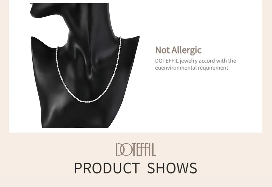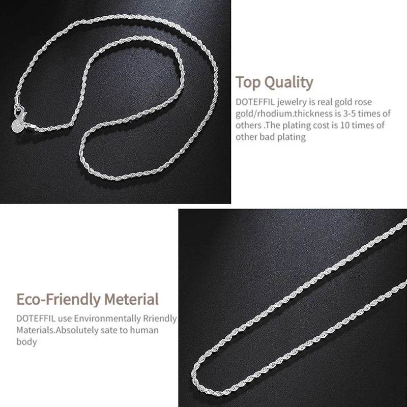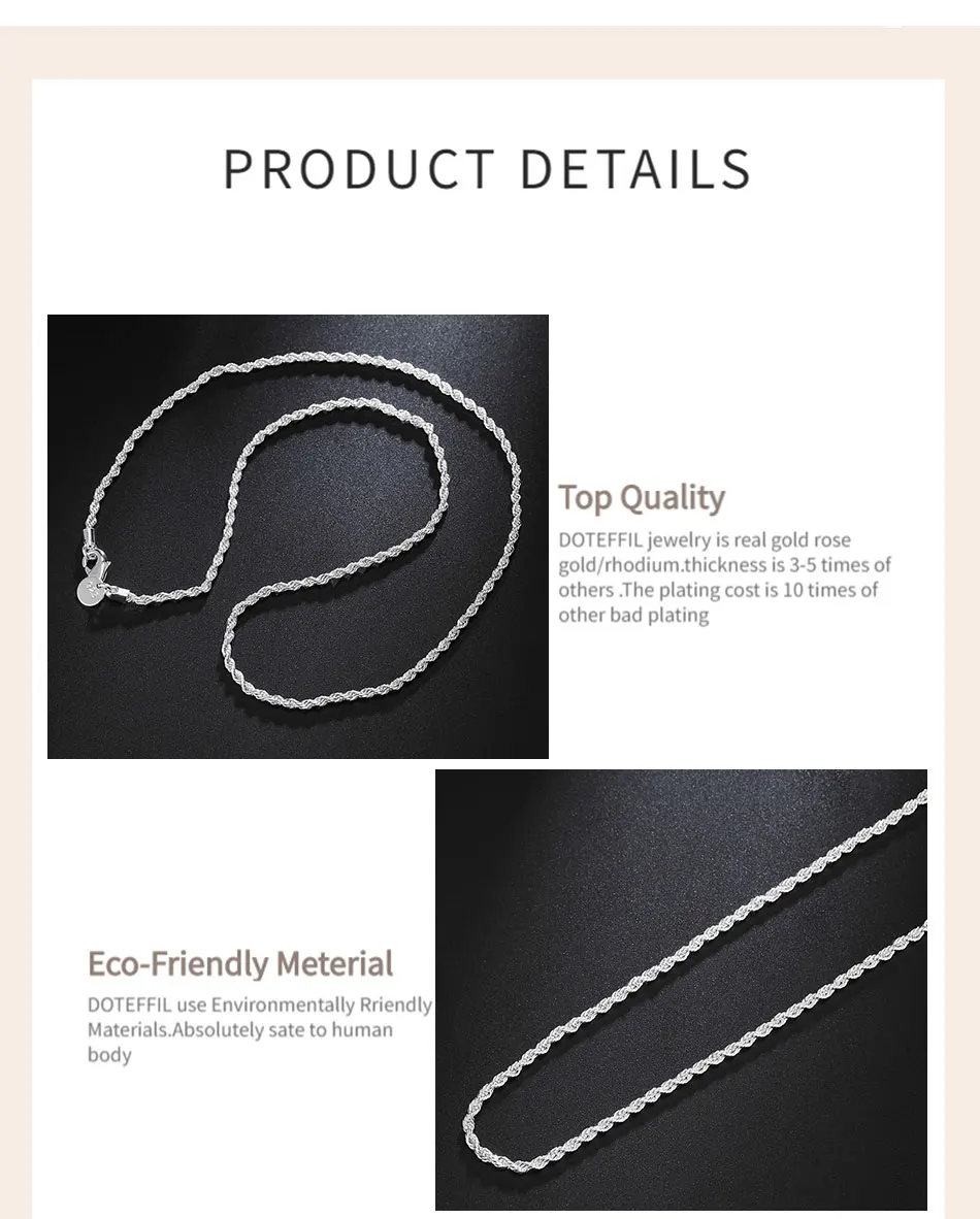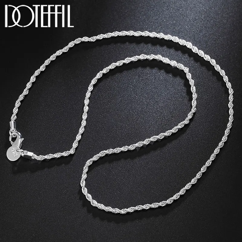 Ожерелье DOTEFFIL из стерлингового серебра 925 пробы, 1618202224 дюйма, 2 мм