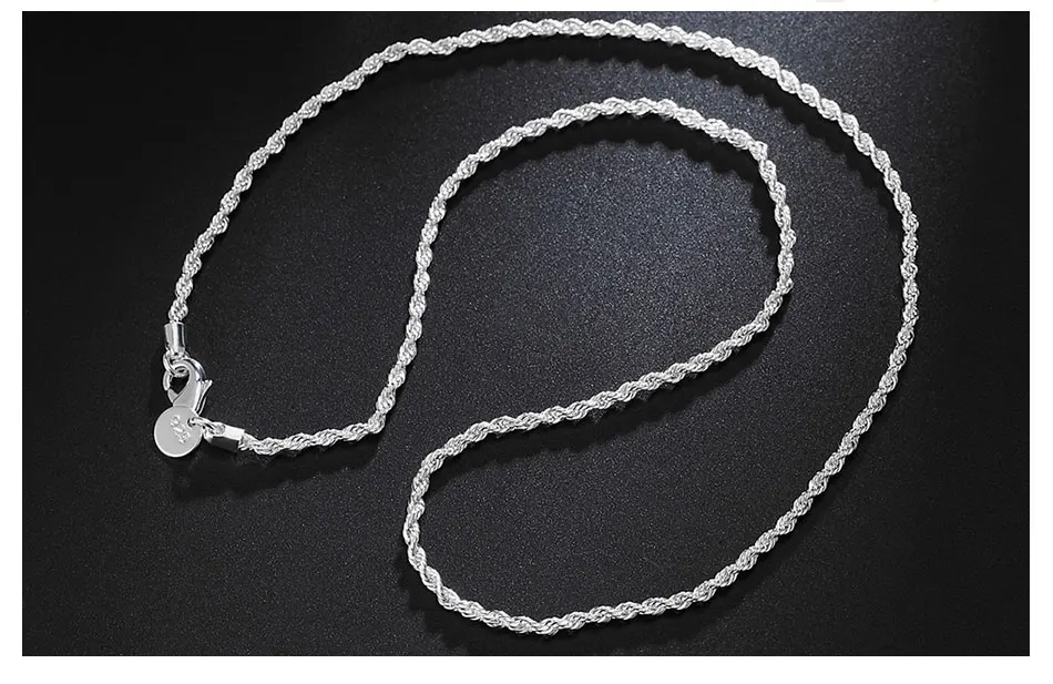 Ожерелье из серебра 925 пробы, 16/18/20/22/24 дюйма, 2 мм