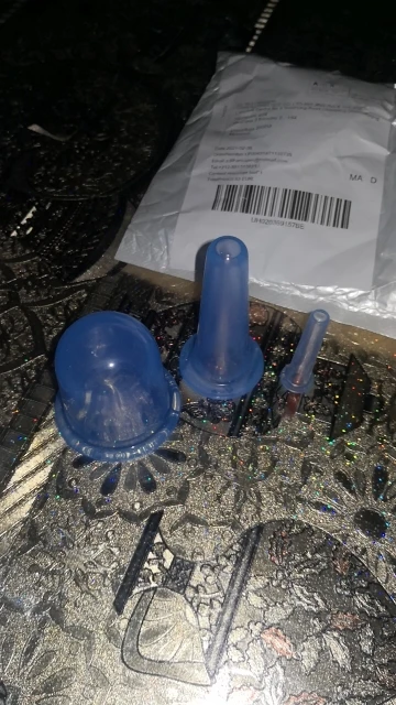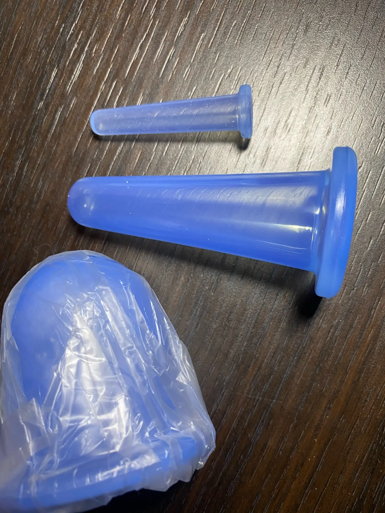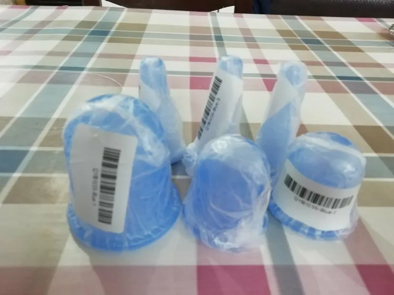 хороший набор, мягкий силикон, цвет и размеры совпадают, без запаха. раньше такими пользовалась, со временем надо менять, от массажа с маслом они дубеют но через год наверное, поэтому лучше сразу пару наборов брать. доставка быстрая - две недели, отправили на следующий день. упаковано стандартно в почтовый пакет. каждая баночка отдельно в свой пакетик. покупкой довольна, рекомендую.