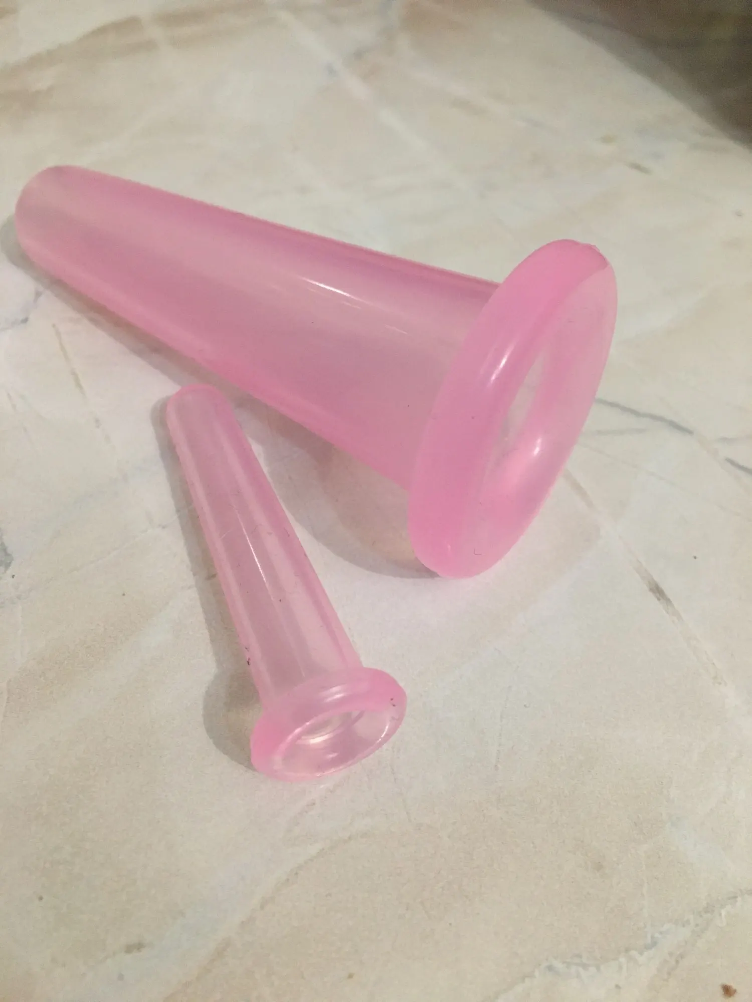 Хорошие качественные банки, только минус, что сила втягивания слабая, силикон неплотный. Большая вообще довольно бесполезная, маленькие для мягкого массажа лица подходят.