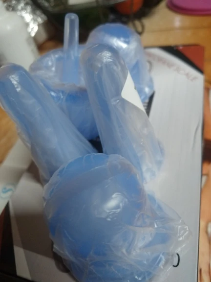 самая большая чаша - слишком огромная и тугая, тяжело сжимать ее рукой. а ещё посылка очень долго ехала, все сроки давно вышли, а ее не было, но спор я не открывала, думала уже не приедет, но нет, приехала
