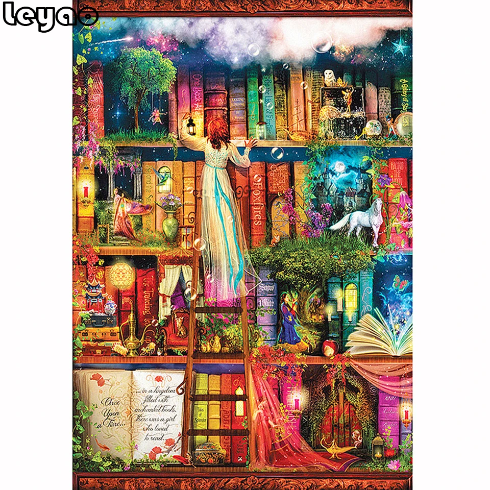 5D DIY Алмазная картина "Фантазия книга с изображением животных полка" полный квадрат/круглая дрель 3D вышивка крестиком кабинет Декор подарок