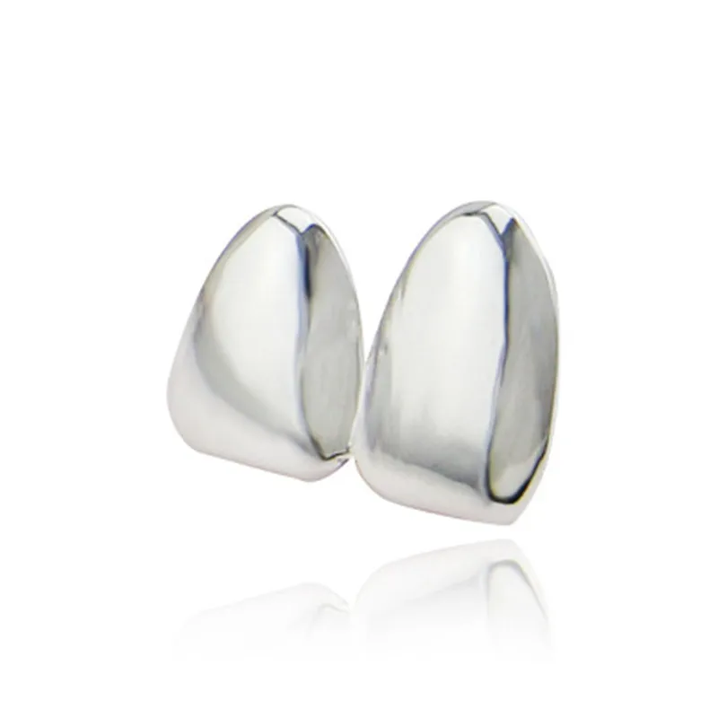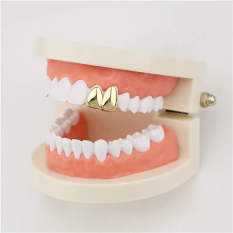 Коронки для зубов мужские, двойные шапки, золотого и серебряного цвета, однотонные с двумя правыми верхними решетками, с одним зубом, модные ювелирные украшения вечерние