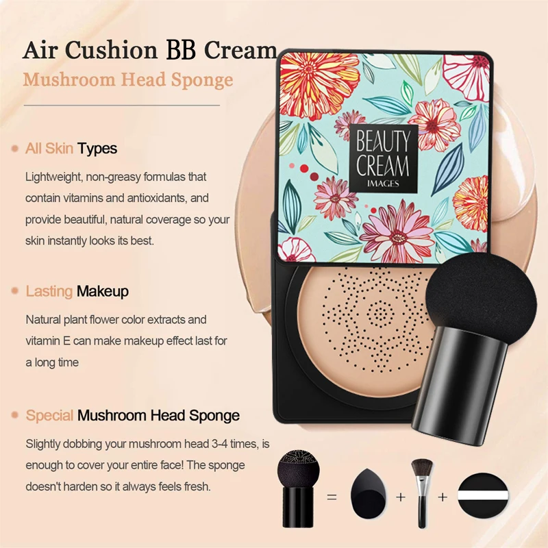 BB-крем с грибовидной головой на воздушной подушке, маскирующий макияж увлажняющий отбеливающий натуральный крем, Корейская Косметика для макияжа