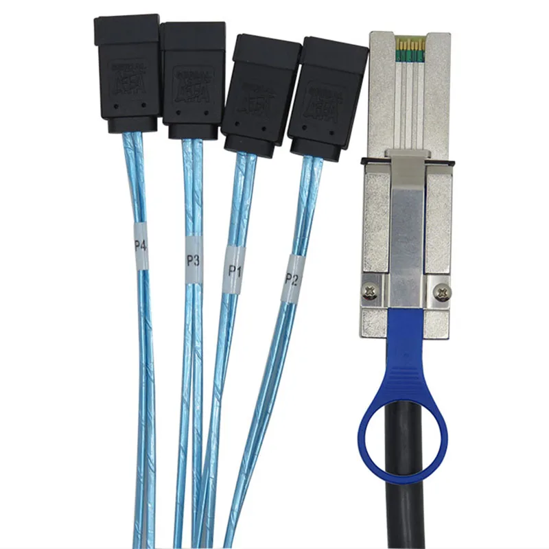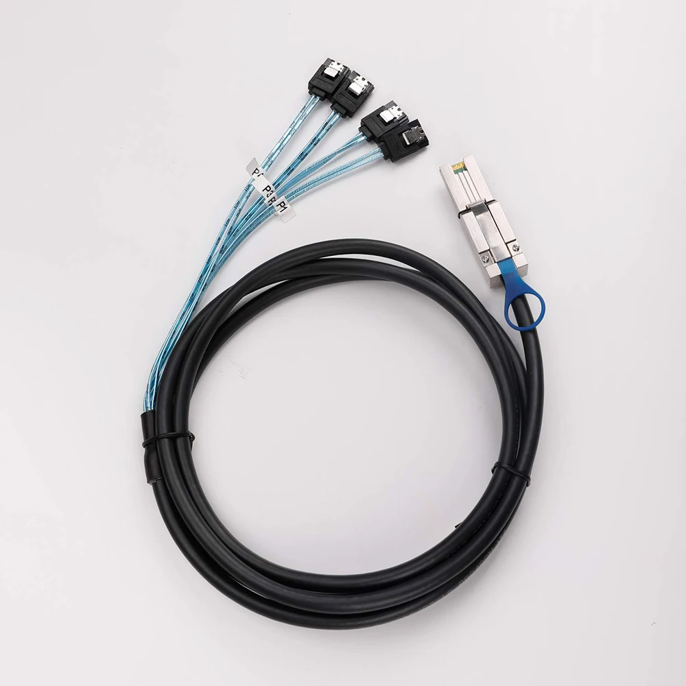 Имеет внешний 26-контактный штекер Mini-SAS SFF-8088 (с высвобождаемым кольцом) на одном конце и 4x 7-контактный Sata на другом.