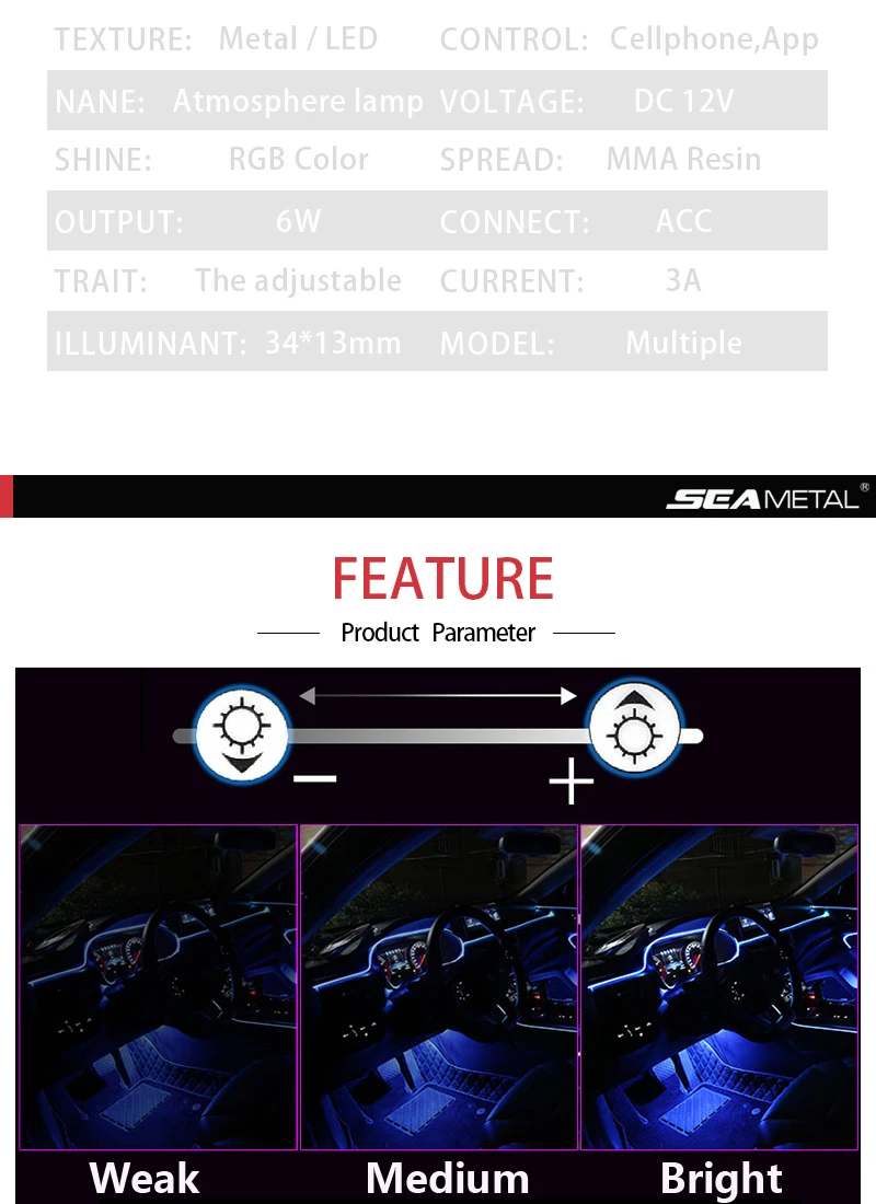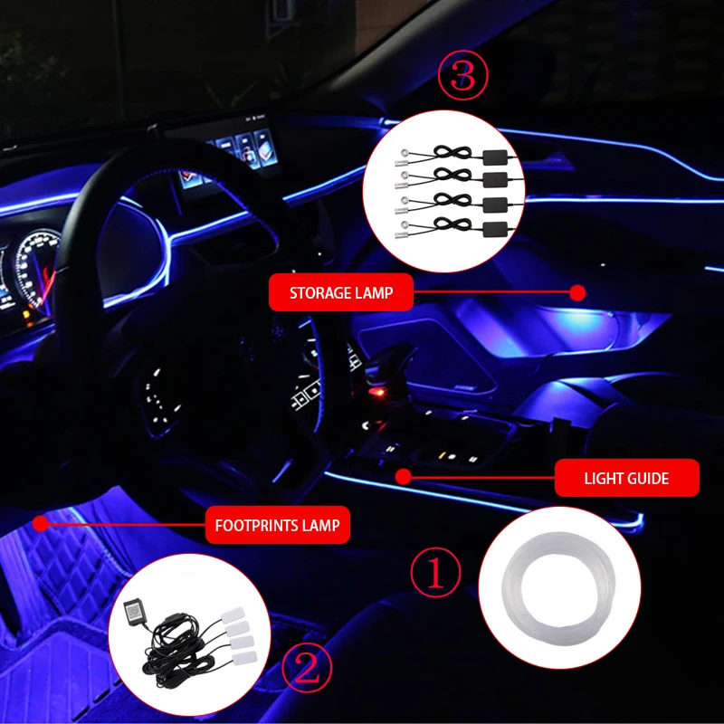 Универсальная Светодиодная лента для освещения салона автомобиля, приборной панели, зазора в двери, декоративная лампа, приложениепульт дистанционного управления RGB, гибсветильник