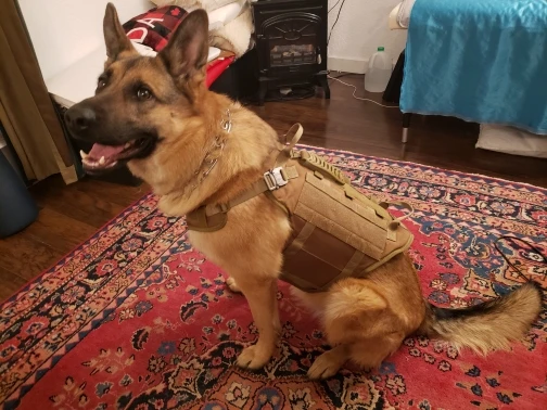 Good communication, also fast shipping. took about 2 weeks. Good fit for our German shepherd (10 months). It fits now on the smallest position. So enough space to grow.. Only downside is the pockets, they fall off pretty easy. I need to find a better way to secure them.