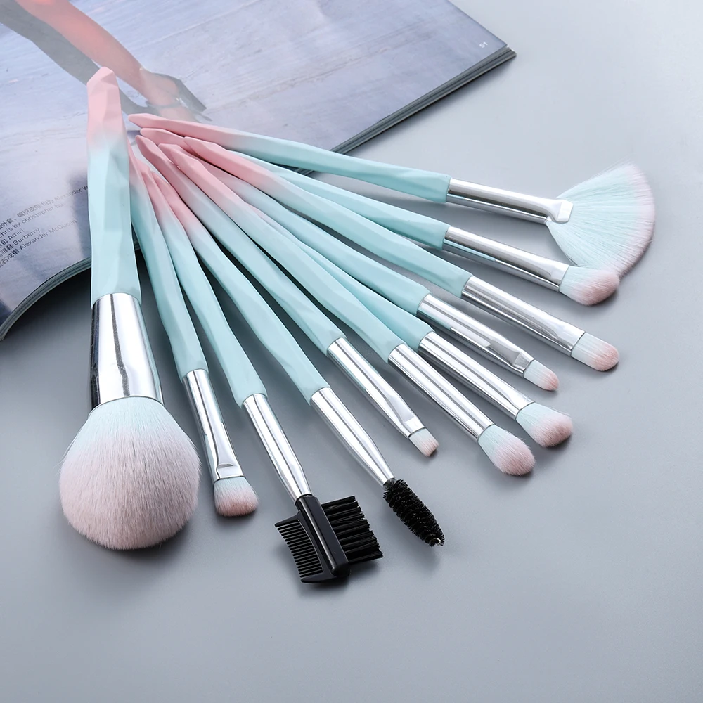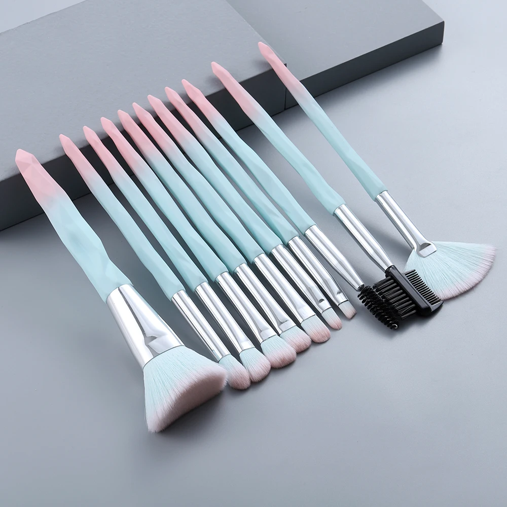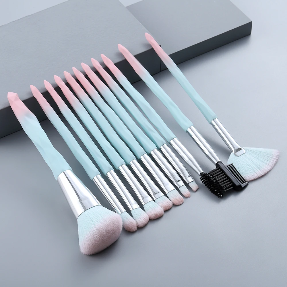 Голубые кисти для макияжа Набор, Расчёска для теней для век, бровей, пудры, румян, контроль краев, Инструменты Кисть для декоративной косметики