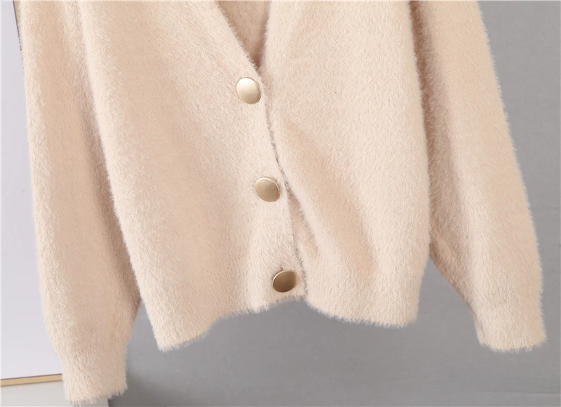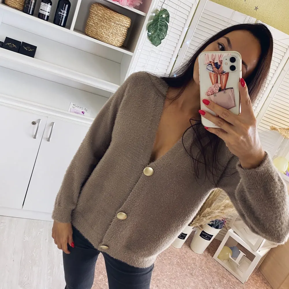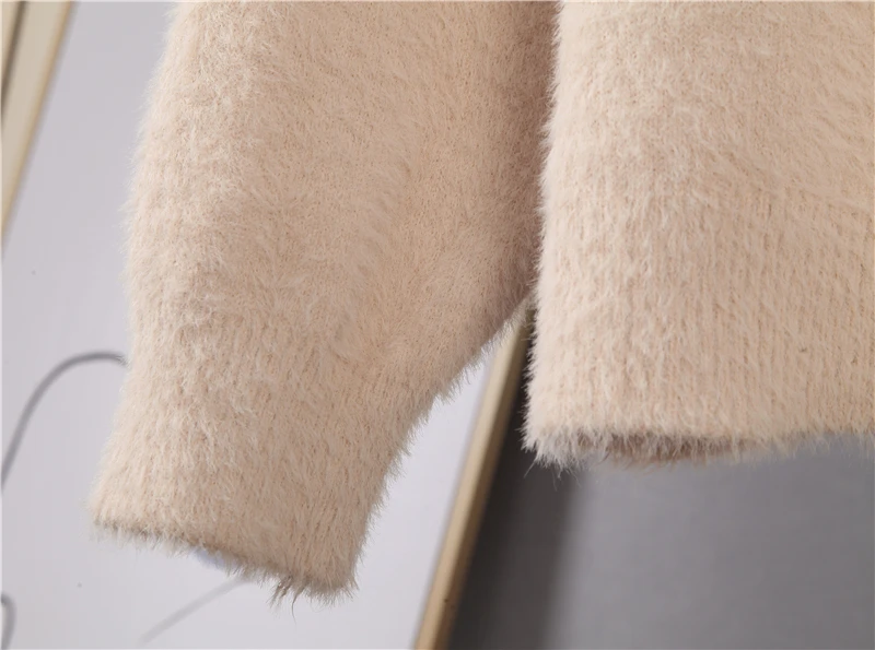 Свитер женский из мохера, с длинным рукавом, однобортный, 2020