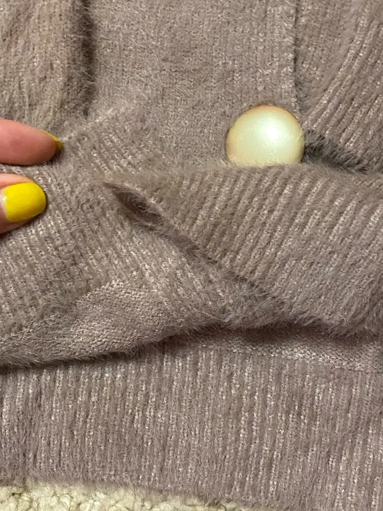 Очень понравился кардиган. Такой мягусенький, нежненький, уютненький. Размер на хs отлично подошёл. Фурнитура хорошая, ярлыка/бирки нет.