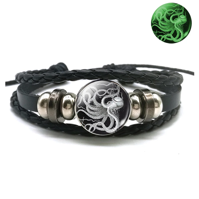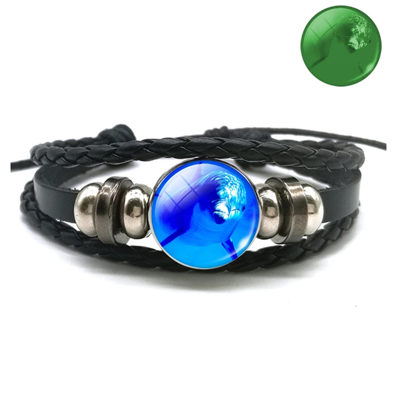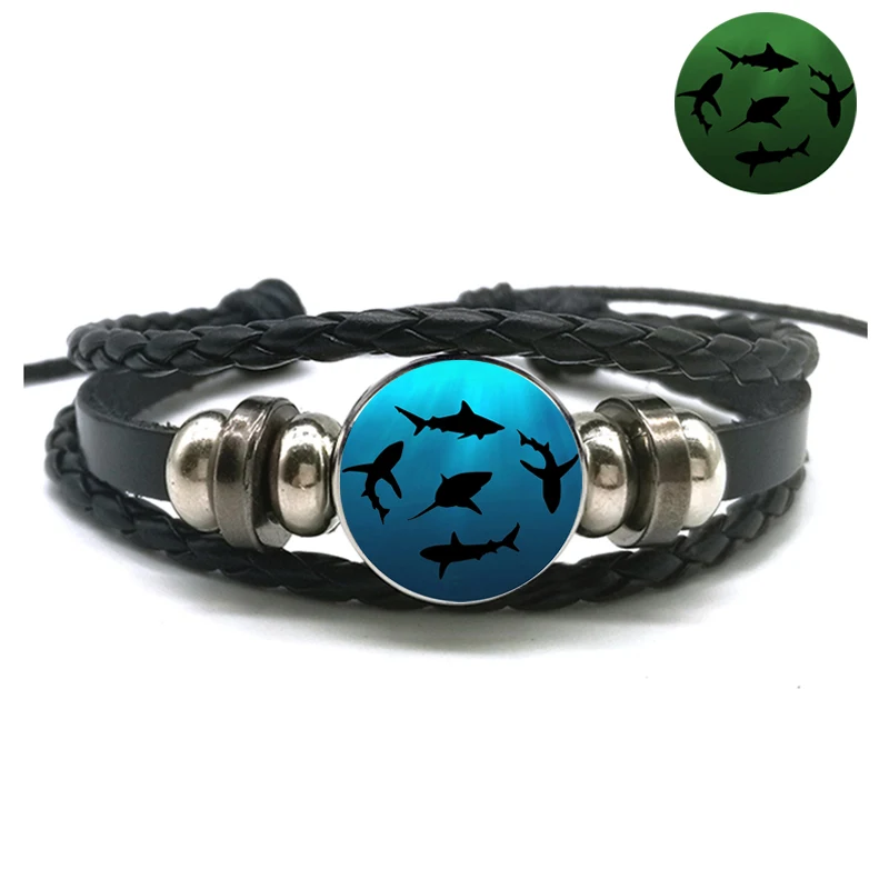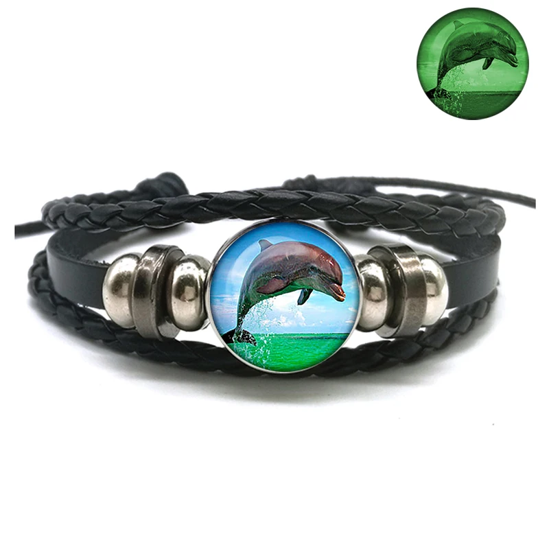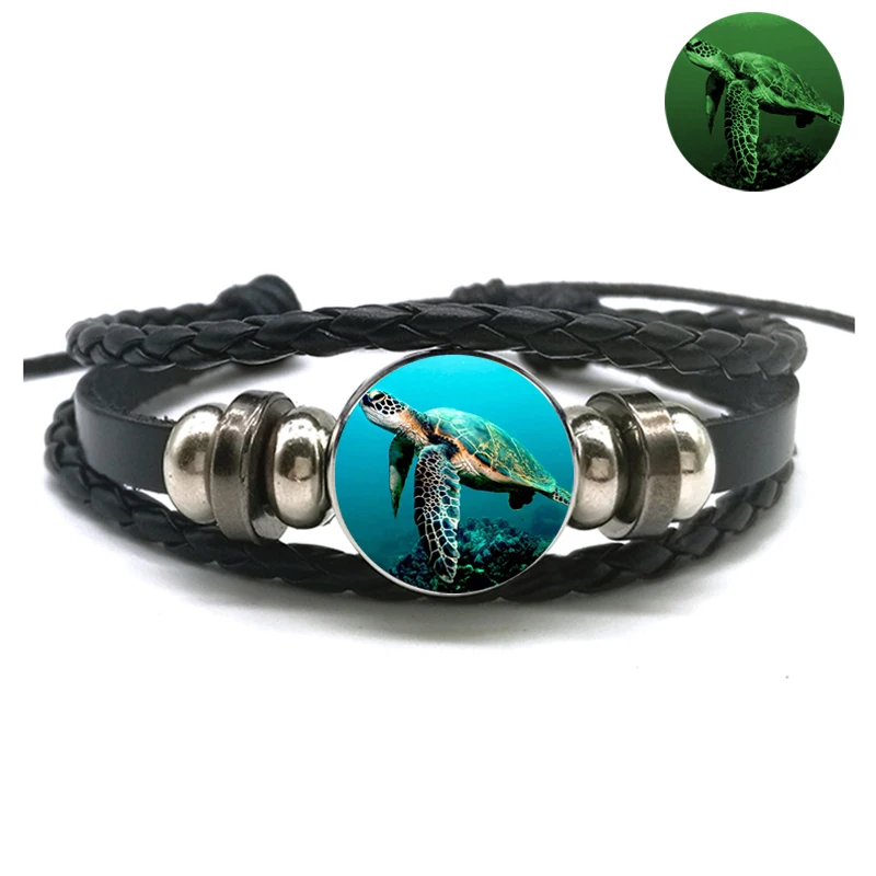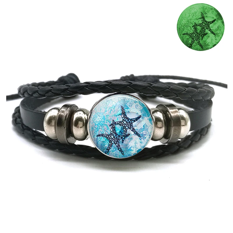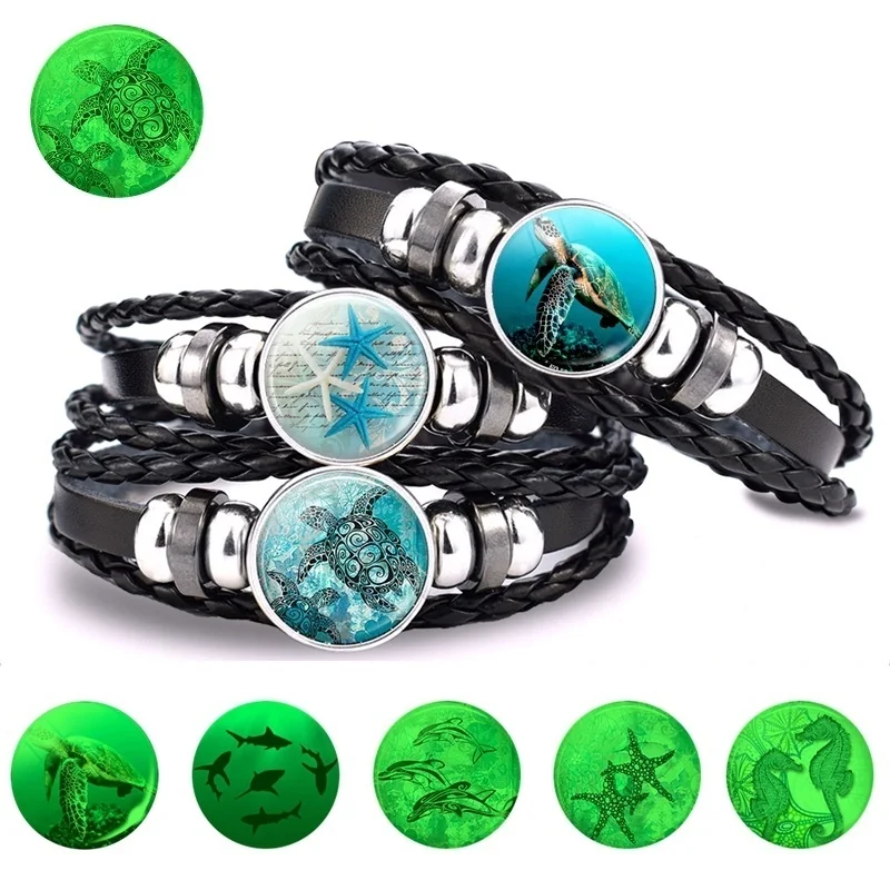 Светящийся браслет с морскими животными, морская черепаха, дельфин, Морская звезда, черный кожаный браслет, светящийся браслет, модные украшения