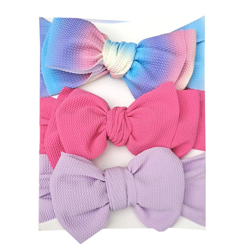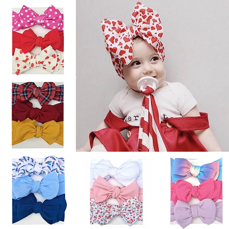 Повязка на голову для новорожденных 3 шт.комплект, нейлоновая широкая эластичная детские ленты для волос с большим бантом, аксессуары для волос
