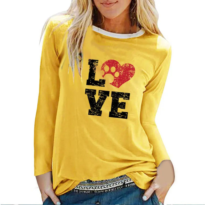 Женская футболка с длинным рукавом, круглым вырезом и принтом