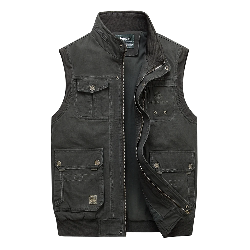 Жилетка мужская хлопковая с воротником-стойкой, жилет без рукавов, много карманов, XL-5XL, подходит для рыбалки, большие размеры, весна-осень