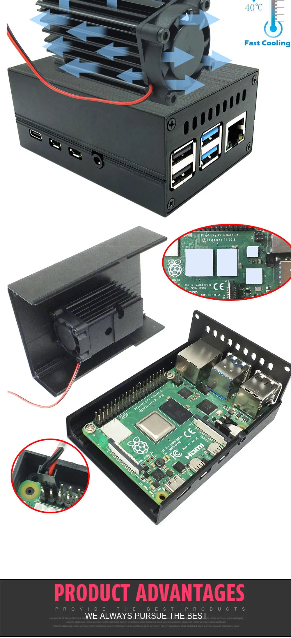 Охлаждающая система Raspberry Pi 4, в алюминиевом корпусе, с 25 мм тихим вентилятором, комплект с радиатором для Raspberry Pi 4 model B