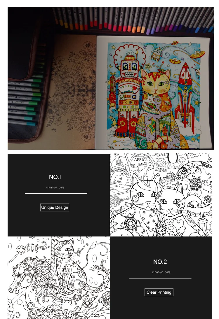 Оригинальная книга для окрашивания кошек для взрослых, дневная книг...
