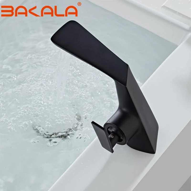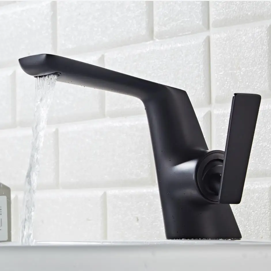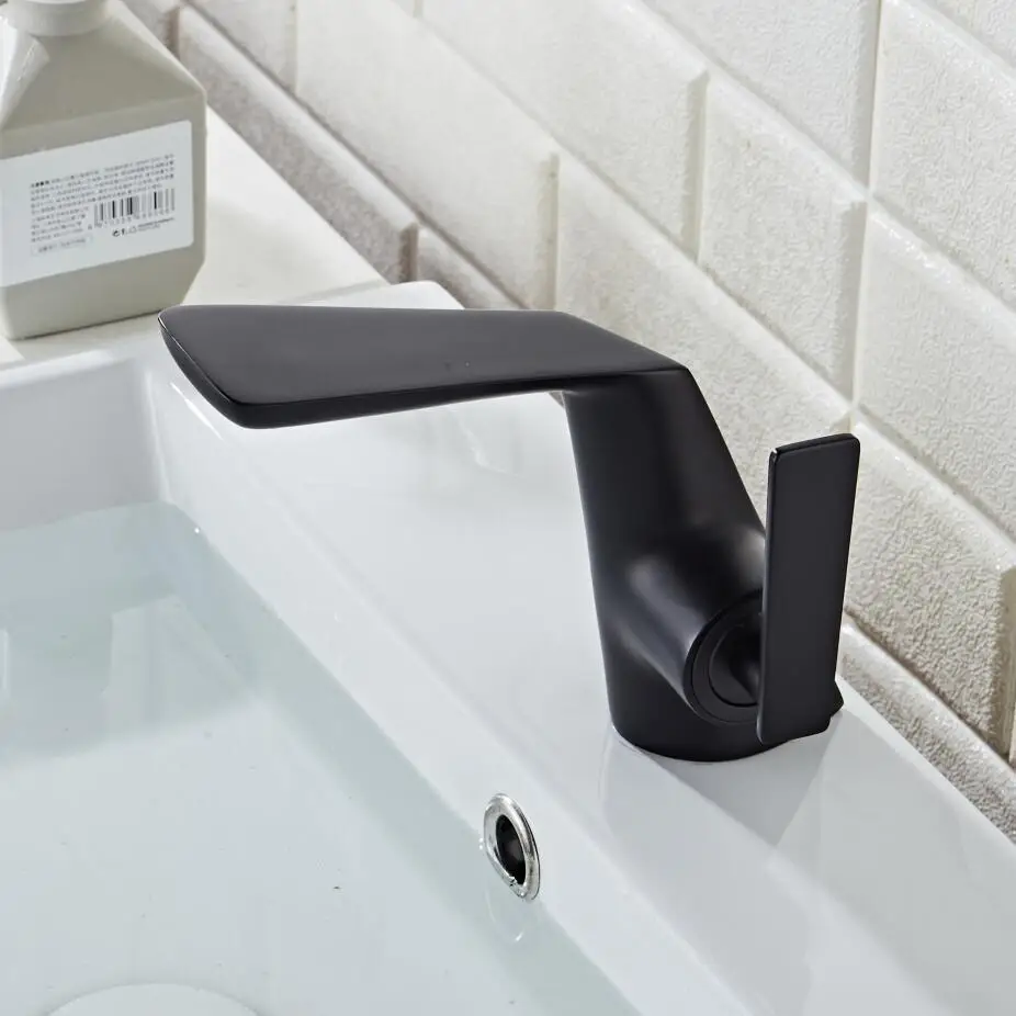 Матовый черный латунный Смеситель для раковины в ванную комнату, кран для горячей и холодной воды, одна ручка, кран для раковины
