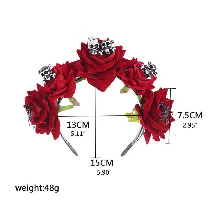 Повязка на голову с изображением феи на Хэллоуин Дня мертвых, Цветущая Роза, корона с изображением жуткий паук, Череп, фестиваль вечерние ринка, обруч для волос, Мексиканский головной убор