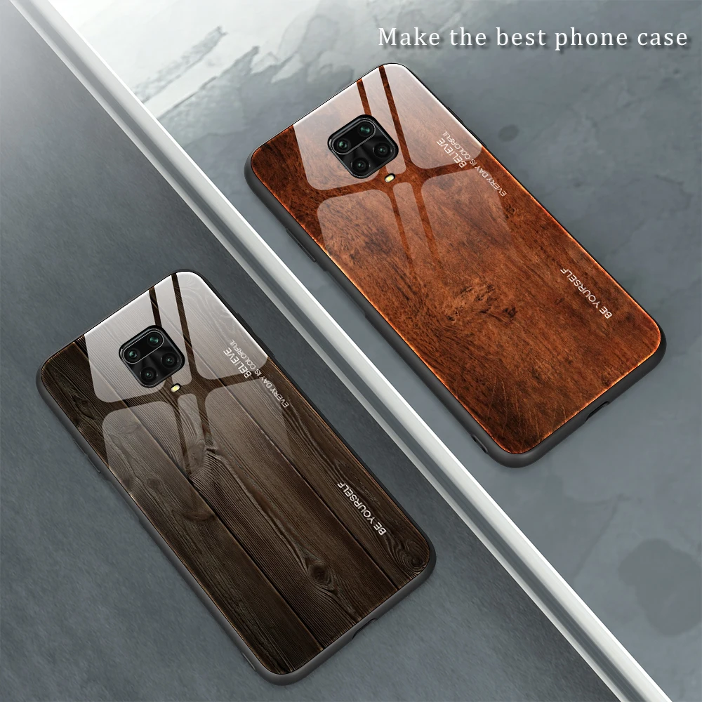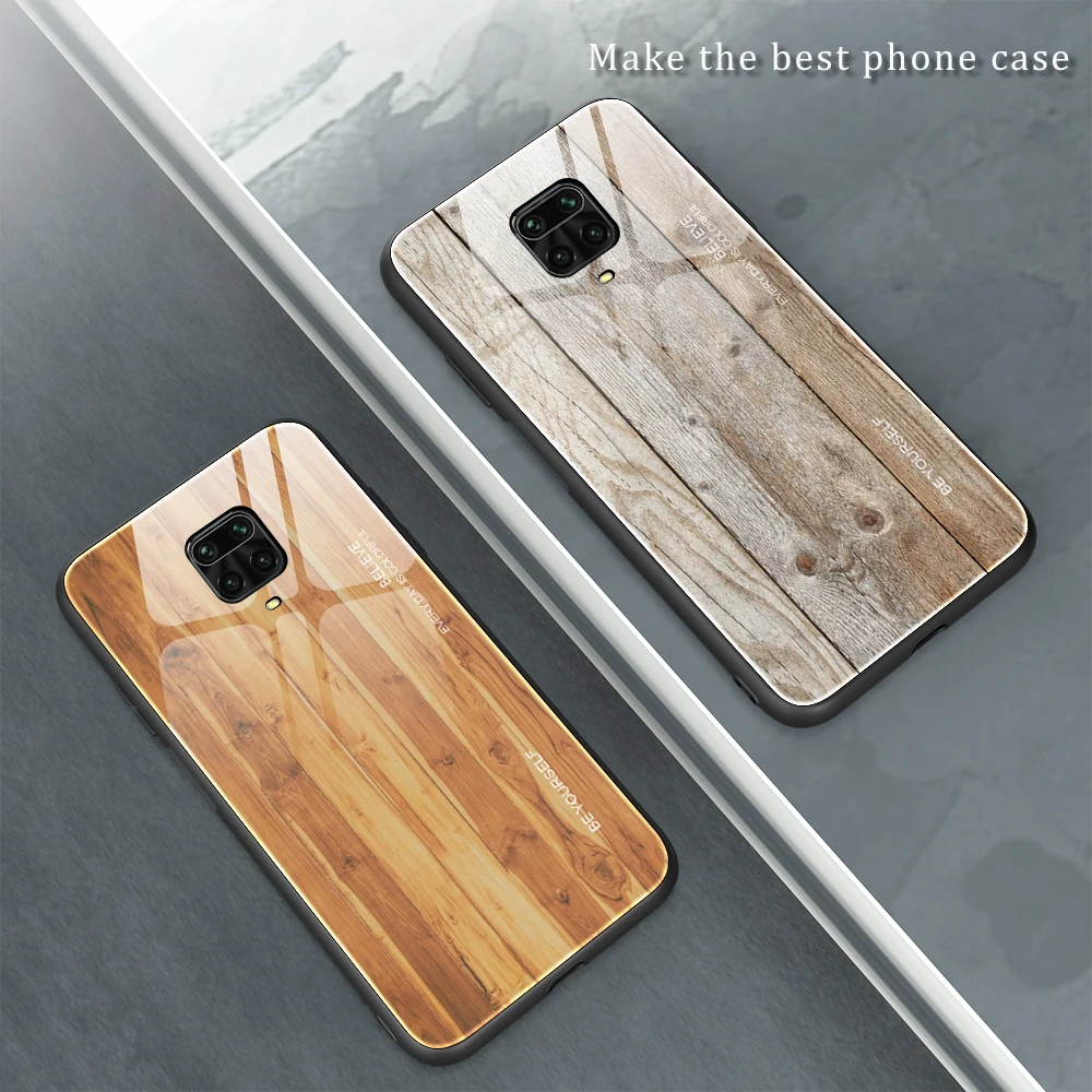 Tempered Phone Case For Xiaomiwood Glass Phone Case For Redmi note 9s note 9 pro Cover