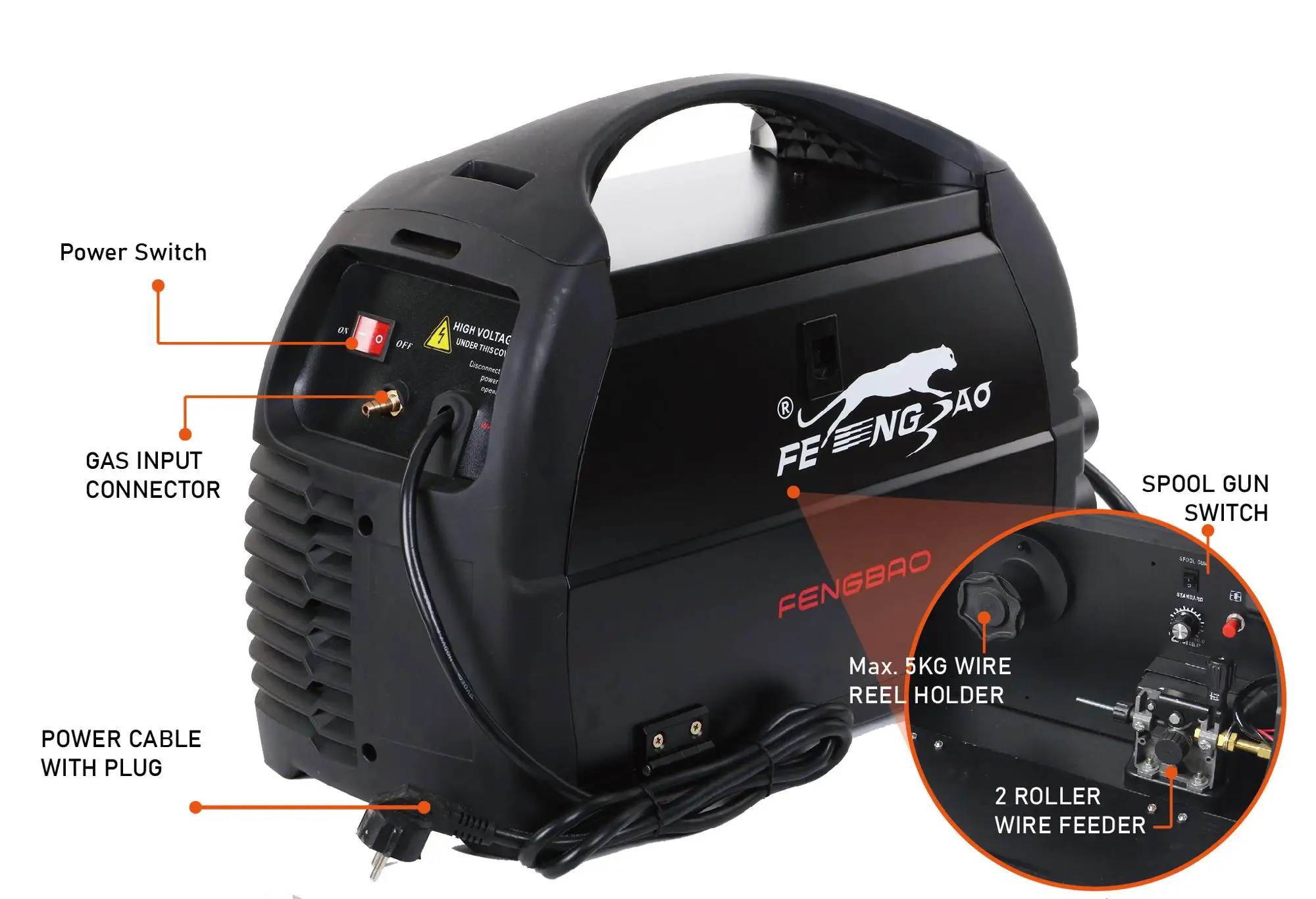 > Устройство подачи проволоки мощно поддерживает проволочную катушку макс. 5 кг.