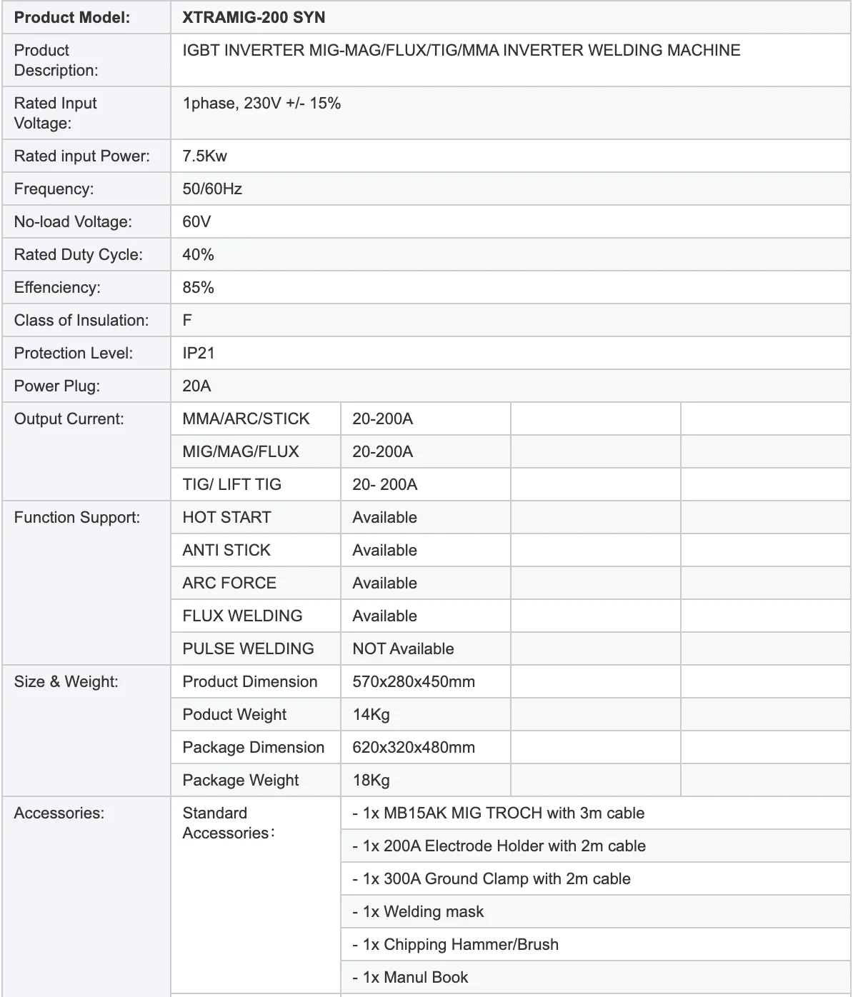 Многофункциональный сварочный аппарат IGBT SYNERGY XTRAMIG-200