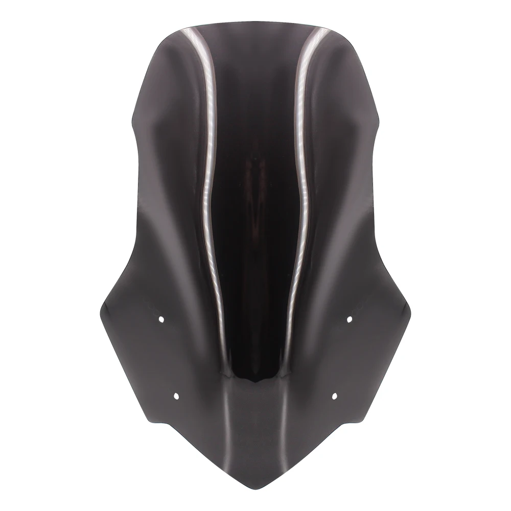 -Защитите любителей мотоциклов от ветра, выброшенных камней, мусора и жуков. -Он имеет твердое оборудование, поэтому он стабильный. -Будет отвлекать больше ветра для более комфортной езды, и это делает более расслабляющей и безопасной езду. -Высококачественное и высокотехнологичное модифицированное акриловое ветровое стекло.