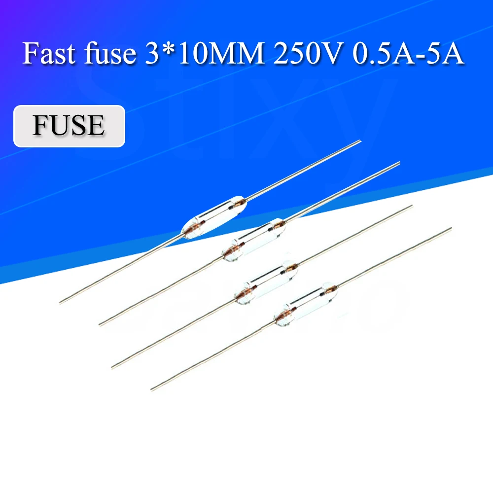 200 шт. 3*10 мм 0.5A1A2A3A5A осевой быстродействующий стеклянный предохранитель со свинцовым проводом 3*10 0.5A 1A 2A 3A 5A