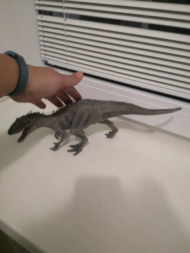 Динозавр большой, но, к сожалению, сам не стоит, заваливается. Может при транспортировке подогнули одну ногу, может так было изначально. Печально, потому как заказывалось в подарок. До Минска шло почти месяц. Продавец сначала дал не верный трек, но потом написал верный. Зачем-то положили еще одного индоминуса меньшего размера, хотя я заказывала только большого. Только поэтому 5 звезд.
